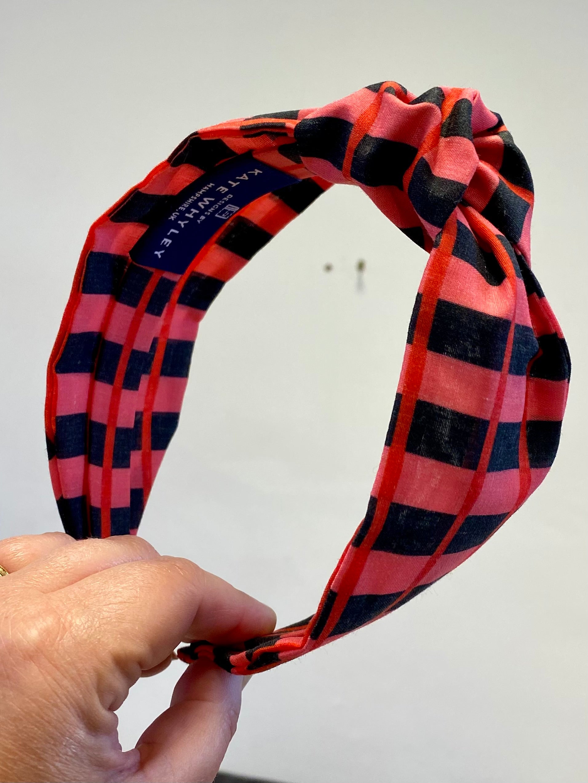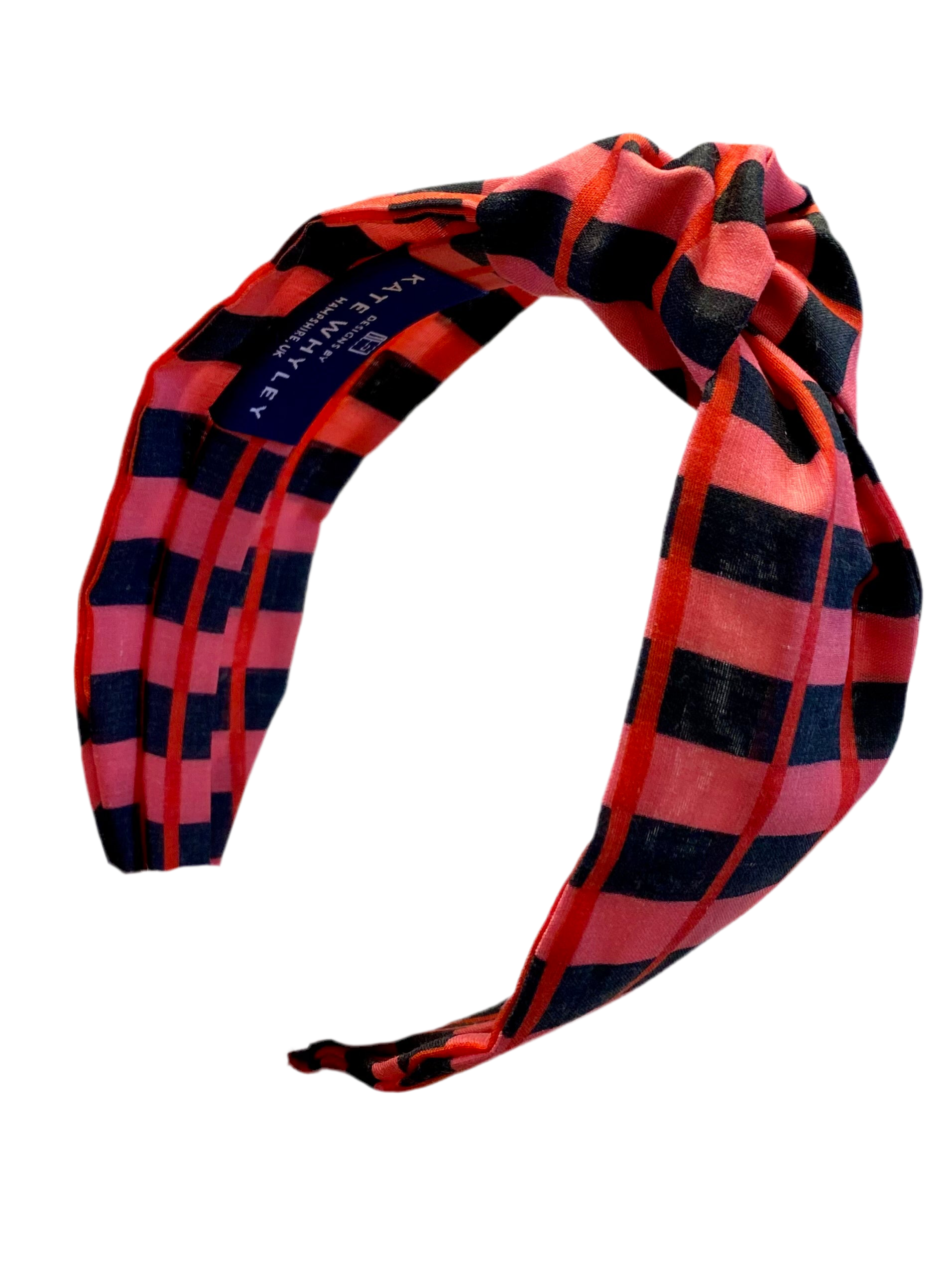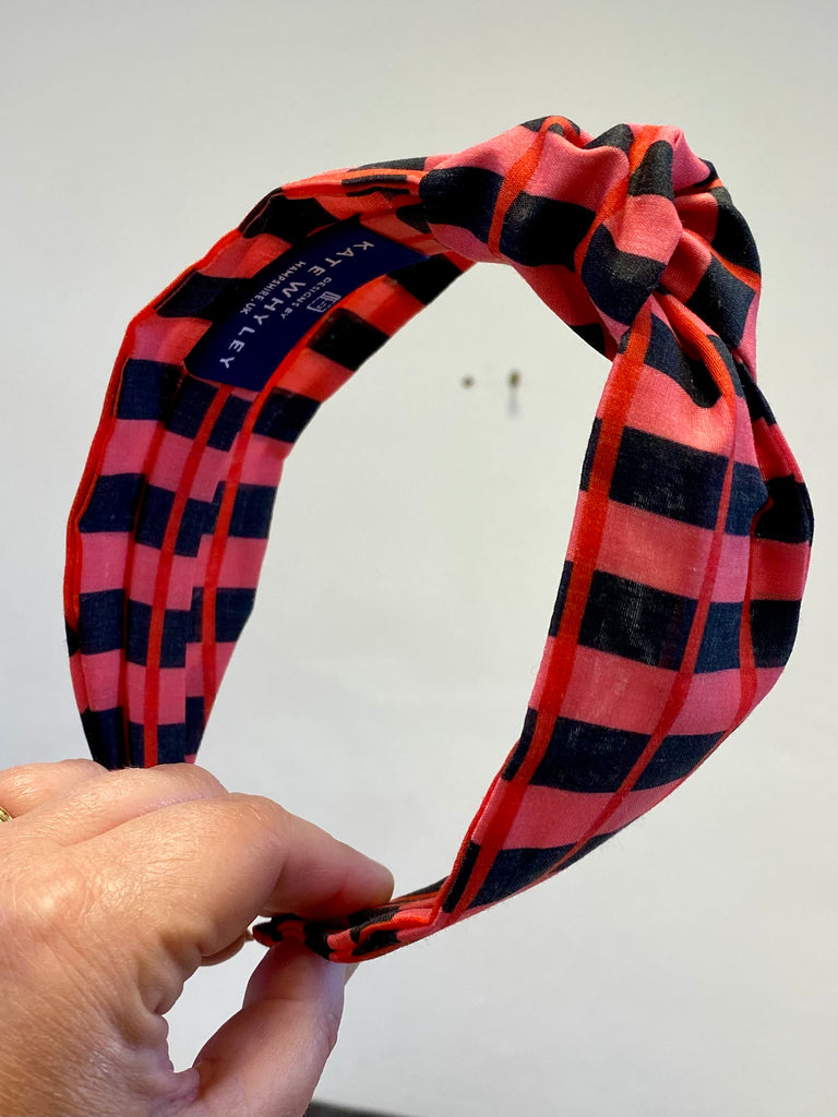 Pink check - handmade knotted headband
